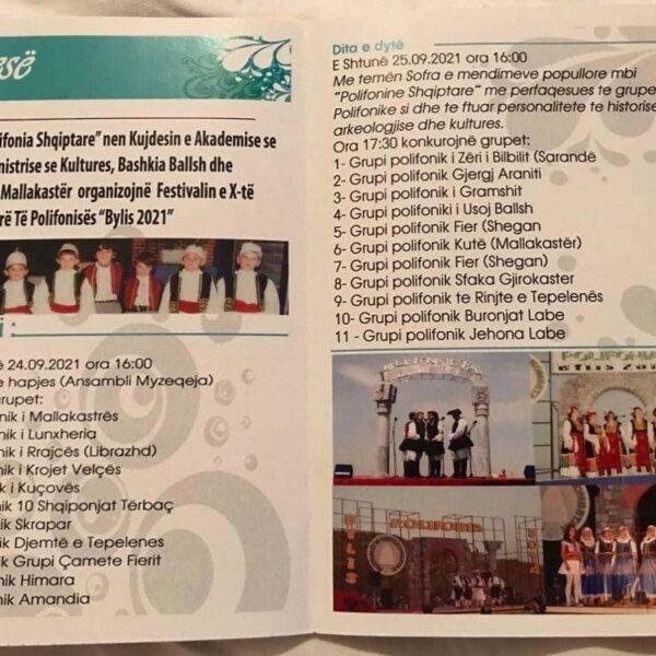 Organisation du Festival International de la Polifonie Albanaise. Samedi 25 Septembre 2021.